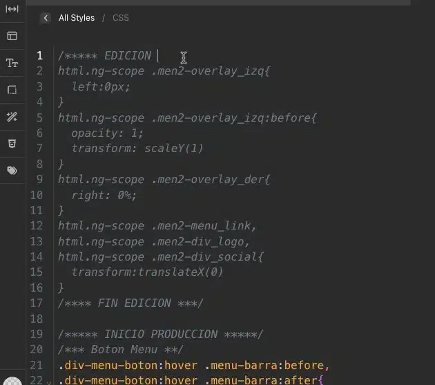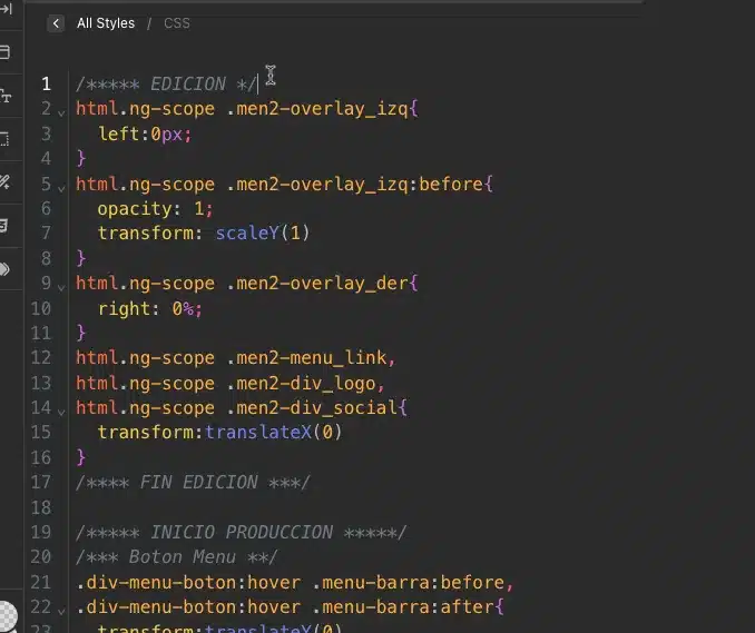 {"component":{"id":34,"name":"ct_div_block","options":{"ct_id":34,"ct_parent":100026,"selector":"div_block-34-884","original":{"position":"relative","overflow":"hidden","width-unit":"vw","width":"100","height-unit":"vh","height":"100"},"nicename":"Div (#34)","activeselector":""},"depth":4,"children":[{"id":35,"name":"ct_code_block","options":{"ct_id":35,"ct_parent":34,"selector":"code_block-35-884","original":{"unwrap":"true","code-php":"","code-css":"/***** EDICION \nhtml.ng-scope .men2-overlay_izq{\n left:0px;\n}\nhtml.ng-scope .men2-overlay_izq:before{\n opacity: 1;\n transform: scaleY(1)\n}\nhtml.ng-scope .men2-overlay_der{\n right: 0%;\n}\nhtml.ng-scope .men2-menu_link,\nhtml.ng-scope .men2-div_logo,\nhtml.ng-scope .men2-div_social{\n transform:translateX(0)\n}\n/**** FIN EDICION ***/\n\n/***** INICIO PRODUCCION *****/\n/*** Boton Menu **/\n.div-menu-boton:hover .menu-barra:before,\n.div-menu-boton:hover .menu-barra:after{\n transform:translateY(0)\n}\n\n\n.divsOpen .menu-barra {\n background: transparent;\n}\n.divsOpen .menu-barra:before {\n transform: rotate(45deg);\n}\n.divsOpen .menu-barra:after {\n transform: rotate(-45deg);\n}\n\n/**** DIVS DE MENU ****/\n.divsOpen .men2-overlay.men2-overlay_der{\n right:0%;\n}\n.divsOpen .men2-overlay.men2-overlay_izq.men2-visible:before{\n transition: 1s;\n opacity: 1;\n transform: scaleY(1)\n}\n.divsOpen .men2-overlay.men2-overlay_izq{\n left: 0%;\n}\n\n/**** ENLACES ***/\n\n.men2-overlay_izq.men2-visible .men2-menu_link{\n transform: translateX(0px)\n}\n.men2-menu_link:hover:after{\n height: 4px;\n}\n\n/***** LOGO ****/\n.divsOpen .men2-div_logo,\n.divsOpen .men2-div_social.social-movido{\n transform: translateX(0px)\n}\n@media screen and ( max-width: 767px) {\n .divsOpen .men2-header-div_izq{\n display: none !important;\n }\n \n}\n\n\n","code-js":"const btnM = document.querySelector('.men2-boton'),\n btnBar = document.querySelector('.men2-boton_barra'),\n body = document.querySelector('body'),\n overIzq = document.querySelector('.men2-overlay_izq'),\n linksMen = document.querySelectorAll('.men2-menu_link'),\n logoDiv = document.querySelector('.men2-div_logo'),\n socialDiv = document.querySelector('.men2-div_social') \nlet ancho = 0\nfunction muestraLinea(e){\n if(e.propertyName !== 'left') return \n this.classList.toggle('men2-visible')\n linksMen.forEach((lnM,index )=>{\n lnM.style.transitionDelay = (index+1) * overIzq.dataset.delay+'ms'\n \n this.addEventListener('transitionend',()=>{\n linksMen.forEach((lnM,index )=>{\n lnM.style.width = lnM.clientWidth + 'px'\n lnM.style.transitionDelay = ''\n })\n })\n })\n}\n\nfunction grandeAfter(ele,f){\n if(f)\n ele.style.width = ancho + 30 + 'px'\n else\n ele.style.width = ancho + 'px'\n}\n\noverIzq.addEventListener('transitionend',muestraLinea)\nlogoDiv.addEventListener('transitionend',()=>{socialDiv.classList.add('social-movido')})\nlogoDiv.style.transitionDelay = linksMen.length * overIzq.dataset.delay + 'ms'\n\nbtnM.addEventListener('click', ()=>{\n body.classList.toggle('divsOpen')\n socialDiv.classList.remove('social-movido')\n})\n \nlinksMen.forEach((lnM, index)=>{\n lnM.addEventListener('mouseover', function(){\n ancho = this.clientWidth\n grandeAfter(this,true)\n })\n lnM.addEventListener('mouseleave', ()=>{grandeAfter(lnM,false)})\n})\n\n"},"nicename":"Code Block (#13)","activeselector":false},"depth":5},{"id":36,"name":"ct_section","options":{"ct_id":36,"ct_parent":34,"selector":"section-36-884","original":{"flex-direction":"row","display":"flex","section-width":"full-width","align-items":"center","justify-content":"center","background-color":"#000000","container-padding-top":"26"},"nicename":"Section (#4)","media":{"tablet":{"original":{"container-padding-bottom":"15","container-padding-top":"15"}},"phone-portrait":{"original":{"text-align":"center","flex-direction":"column","display":"flex","align-items":"center"}},"phone-landscape":{"original":{"text-align":"center","flex-direction":"column","display":"flex","container-padding-top":"0","container-padding-bottom":"0"}}}},"depth":5,"children":[{"id":37,"name":"ct_div_block","options":{"ct_id":37,"ct_parent":36,"selector":"div_block-37-884","original":[],"nicename":"men2-header-div_izq","classes":["men2-header-div","men2-header-div_izq"]},"depth":6,"children":[{"id":38,"name":"ct_code_block","options":{"ct_id":38,"ct_parent":37,"selector":"code_block-38-884","original":{"code-php":"\n <path\n d=\"M20.99 23.759L3.05 11.384C1.232 10.13 1.85 7.51898 4.117 6.90498L23.184 1.72998C23.5879 1.58424 24.0207 1.53693 24.4466 1.59198C24.8724 1.64703 25.279 1.80285 25.6326 2.04651C25.9861 2.29017 26.2765 2.61464 26.4795 2.99299C26.6825 3.37134 26.7924 3.79266 26.8 4.22198L25.67 21.771C25.536 23.854 22.808 25.013 20.99 23.759Z\"\n class=\"ccompli2\" fill=\"#E9327C\">\n <path\n d=\"M15.3 26.814L4.73098 6.14504C4.48938 5.6722 4.38307 5.14181 4.42376 4.61238C4.46445 4.08295 4.65057 3.57504 4.96158 3.14467C5.2726 2.7143 5.69643 2.37818 6.18634 2.17338C6.67625 1.96858 7.2132 1.90306 7.73798 1.98405L27.325 5.00704C27.7759 5.07665 28.2039 5.2523 28.5738 5.51955C28.9436 5.78681 29.2447 6.13803 29.4524 6.54434C29.66 6.95065 29.7683 7.40044 29.7682 7.85674C29.7681 8.31303 29.6597 8.7628 29.452 9.16904L20.429 26.815C20.1867 27.2865 19.8191 27.6821 19.3666 27.9582C18.9141 28.2344 18.3943 28.3804 17.8642 28.3803C17.3341 28.3802 16.8143 28.234 16.3619 27.9577C15.9095 27.6813 15.5421 27.2856 15.3 26.814V26.814Z\"\n class=\"ccompli1\" fill=\"#1DACE3\">\n <path\n d=\"M26.752 4.91801L16.988 3.41101L5 6.66601L9.785 16.027L20.99 23.759C21.2372 23.9277 21.5091 24.0569 21.796 24.142L26.052 15.819L26.752 4.91801Z\"\n class=\"ccompli1\" fill=\"#001A49\">\n <path\n d=\"M76.209 7.33402C76.209 6.97109 76.3166 6.61632 76.5182 6.31455C76.7199 6.01279 77.0065 5.77759 77.3418 5.6387C77.6771 5.49982 78.046 5.46348 78.402 5.53428C78.7579 5.60509 79.0849 5.77986 79.3415 6.03648C79.5982 6.29311 79.7729 6.62008 79.8437 6.97603C79.9145 7.33199 79.8782 7.70095 79.7393 8.03625C79.6004 8